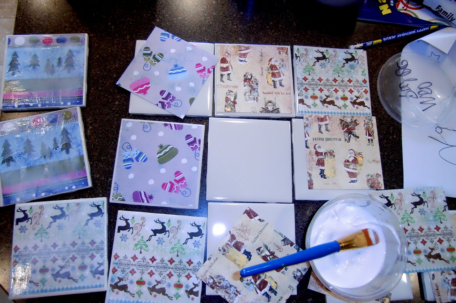 Give it several good coats. It takes about 10 minutes in between coats. This will keep the Mod Podge from coming off and your coasters will actually be USEFUL for placing drinks on.