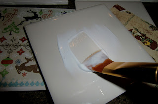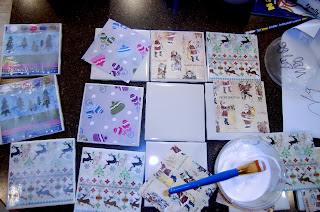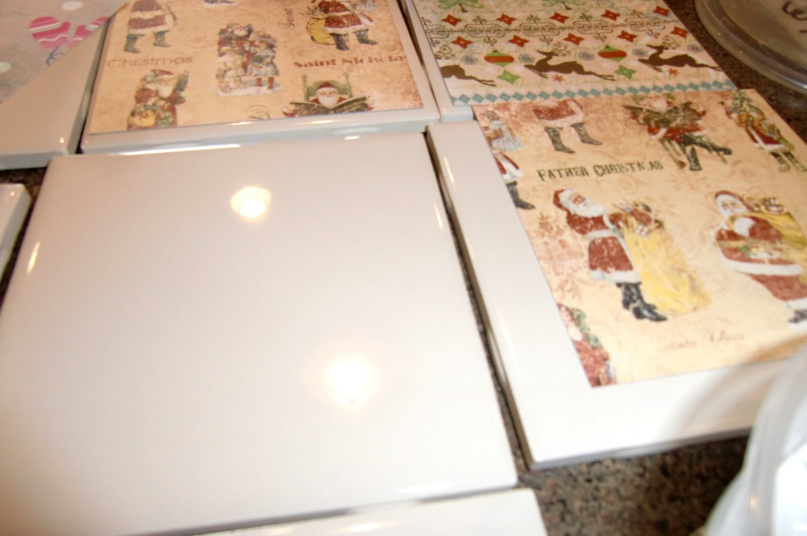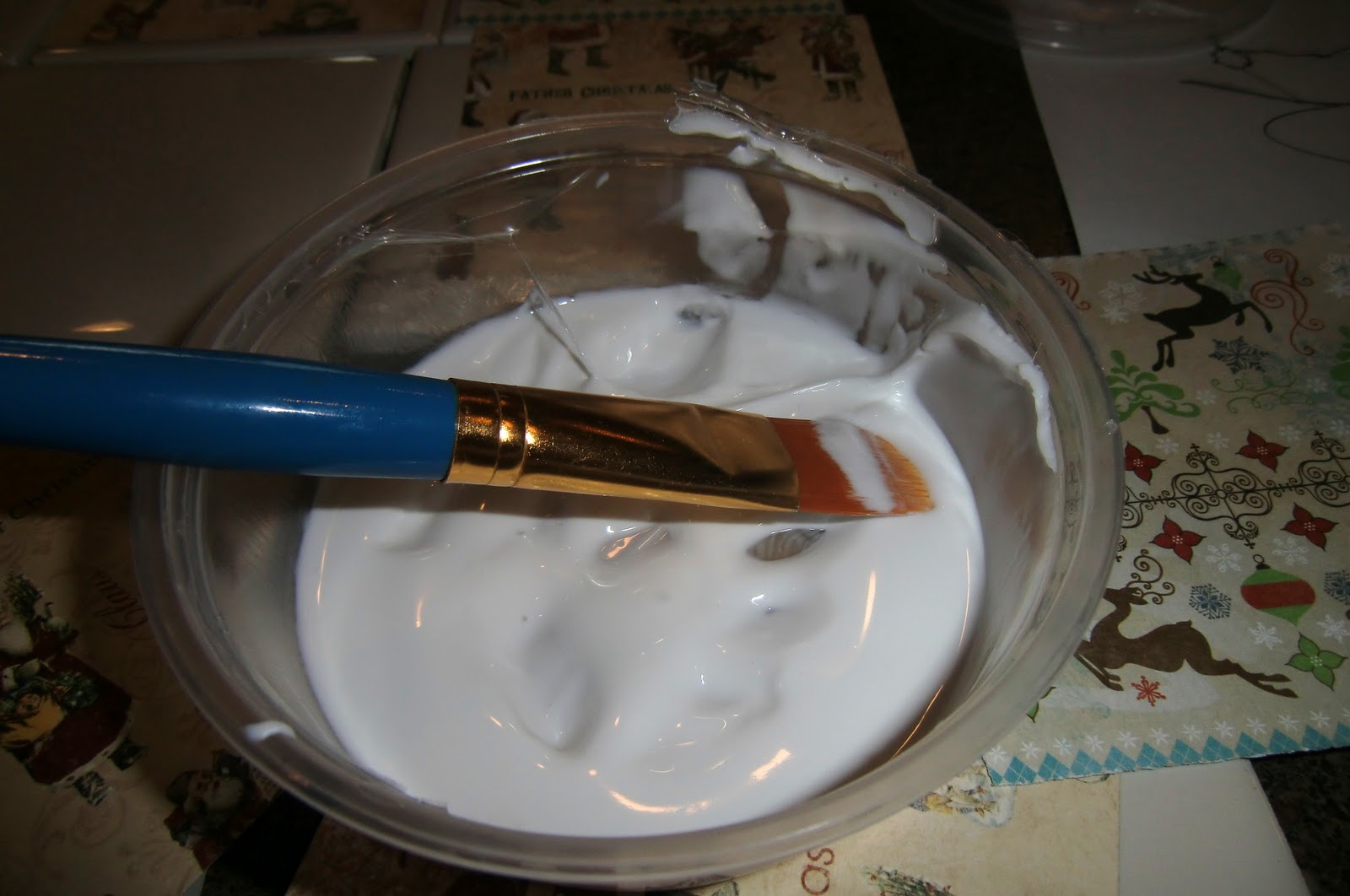 Liberally apply your Mod Podge to the top of your tile. (one at a time...you don't want it to dry to fast!)