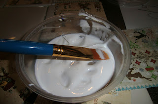 Mod Podge! Have I mentioned how much I LOVE this stuff! I don't know what it is...but it's fun--and you can use it for anything! I have heard that "glittery" Mod Podge exists! I haven't seen it or used it, but when I do--oh boy!!!!