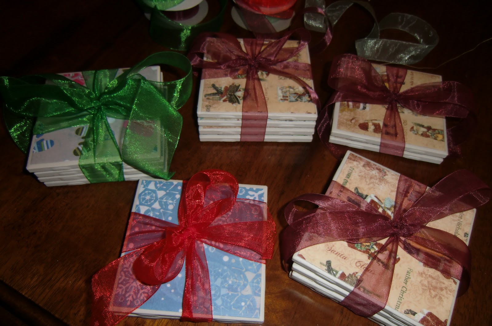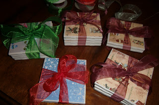 Stacks of 2 or 4 make a nice gift! And they are useful--which I said. These coasters can be made for any season, or occassion. I saw ones on the lovely Pintrest with initials on them.