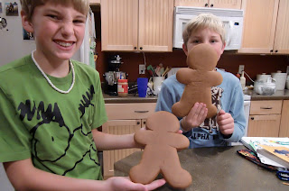For as long as I can remember, the boys and I (sometimes, but rarely, Rookie) decorate a Gingerbread House(s) at Christmas. It is always fun, and they are always *beautiful* and they always sit around my house tempting little boys to naw on them and break their teeth off on petrified candy pieces. Last year was special doing it with our friends the Denney's and the Lovett's. But this year (again, the Hawaii trip screwed everything up) we didn't have time to do them!