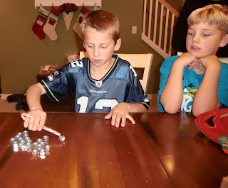 I got Rookie on board with my ideas of Reindeer Games--we had all kinds of games planned (all stolen ideas from above mentioned website) and we were EXCITED! Between both sides of the family--extended and everything--we would have 21 people--8 kids, 13 adults! Sweet! We could do this.
